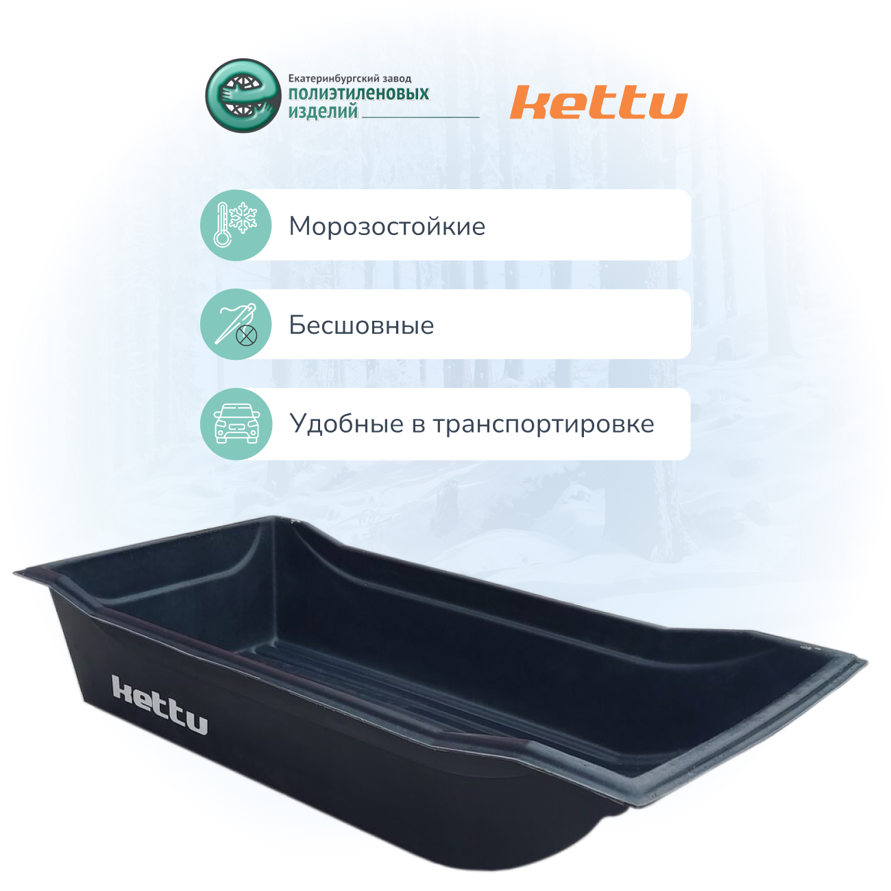 Сани-волокуши Kettu обладают отличной морозоустойчивостью. Материал не теряет прочность при температурах до -52°С! При крайней необходимости, продукцию можно эксплуатировать и в более суровых условиях, однако отношение к саням при этом должно быть максимально бережным.